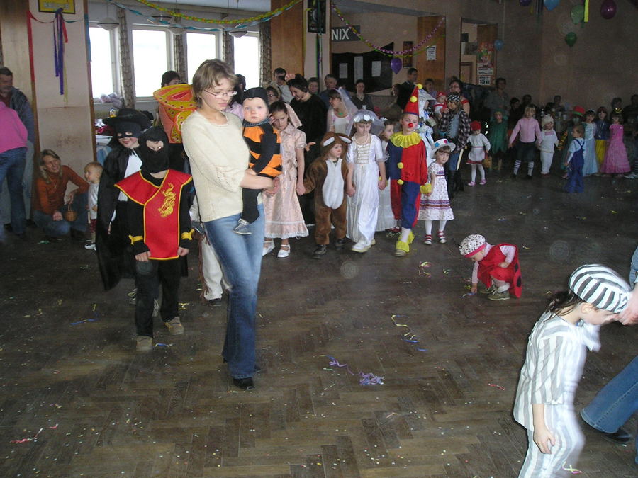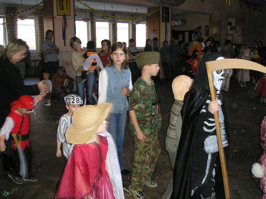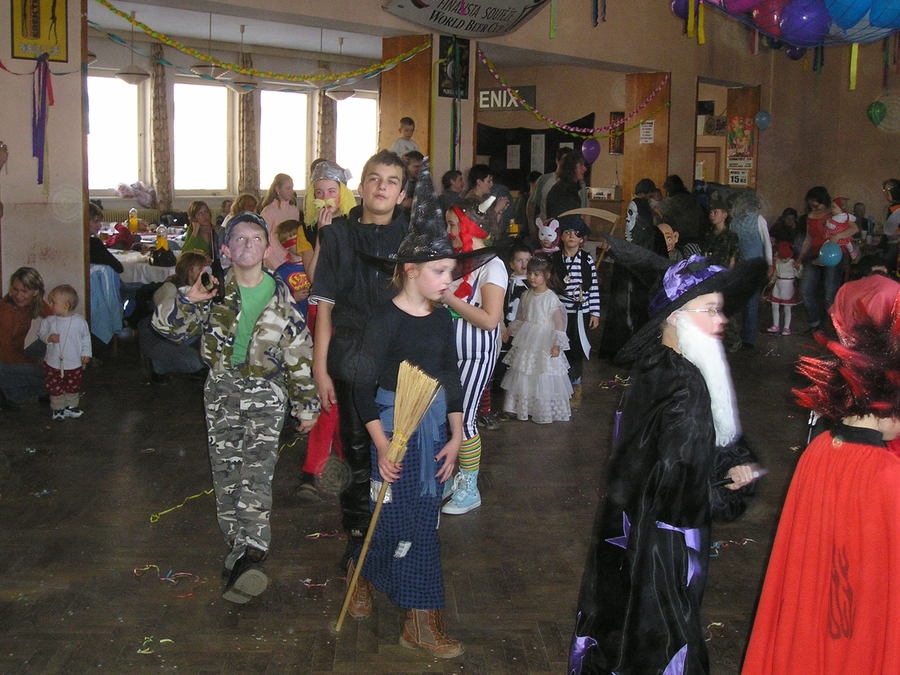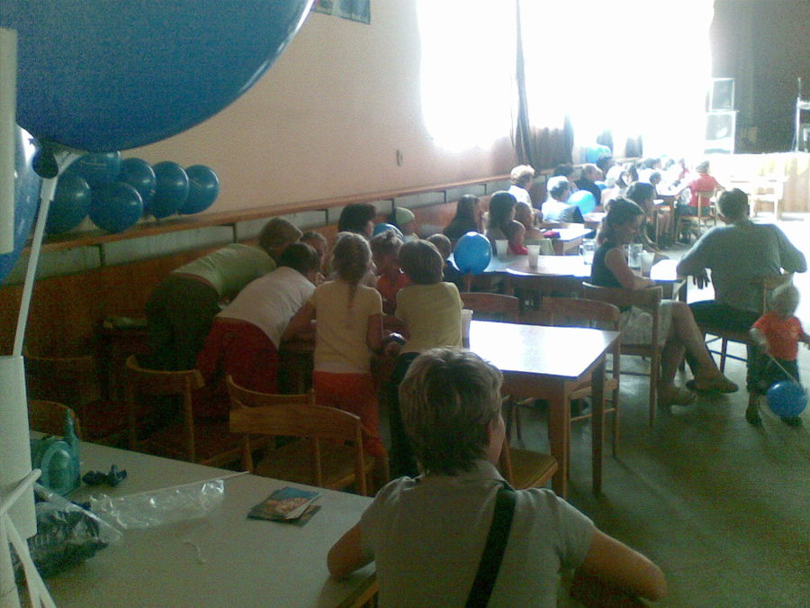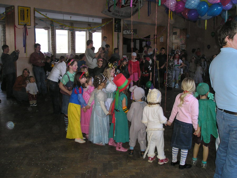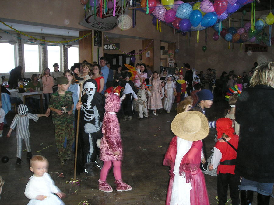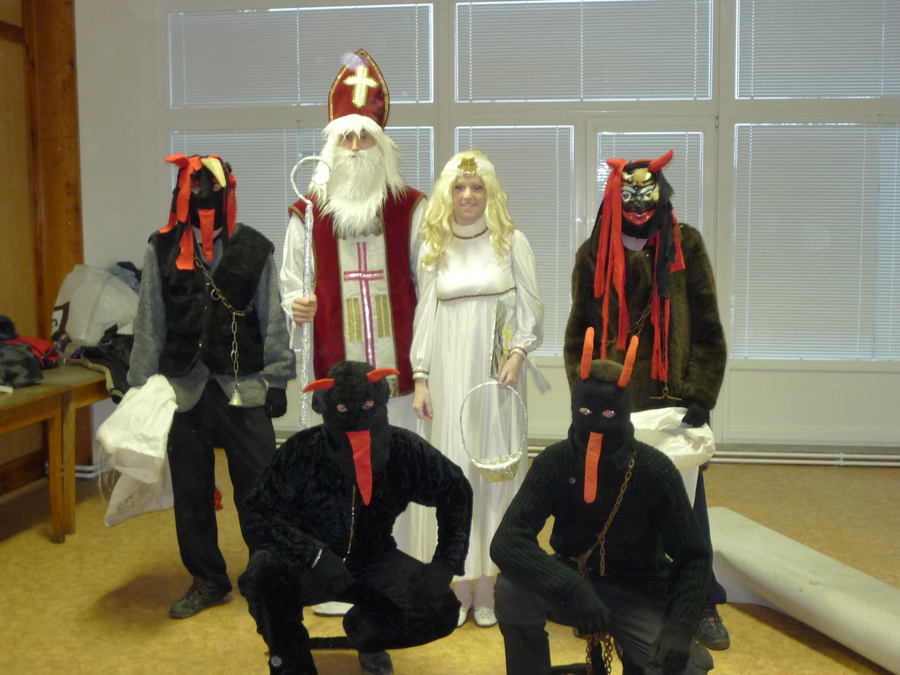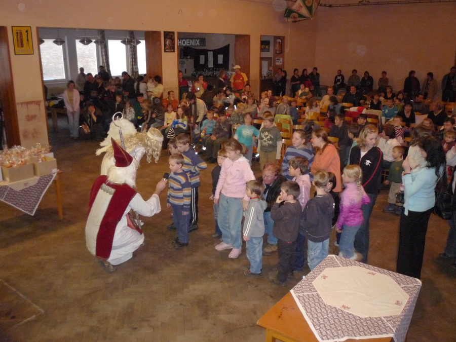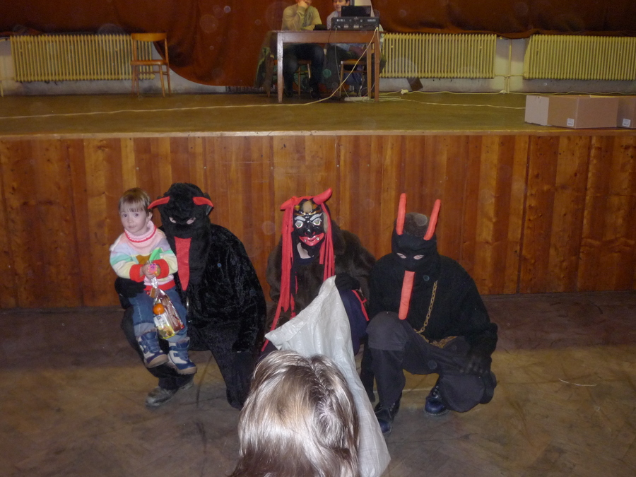 Do sálu vlétlo několik čertů, obklíčili děti a za pekelného rachotu se snažili  nezbedníky pochytat do pytlů. V tu chvíli naštěstí vstoupil Mikuláš s andělem a zjednali pořádek. Po nadílce se děti pobavili při diskotéce a spokojeně odešli domů.